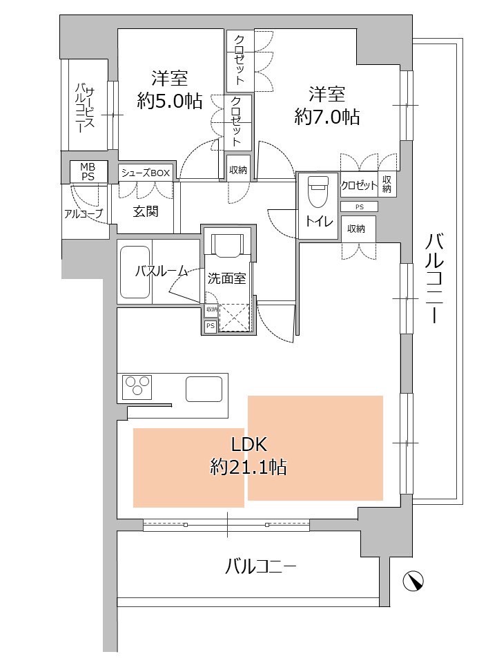 5階 2LDK 71.18㎡ 南西向き 7,680万円