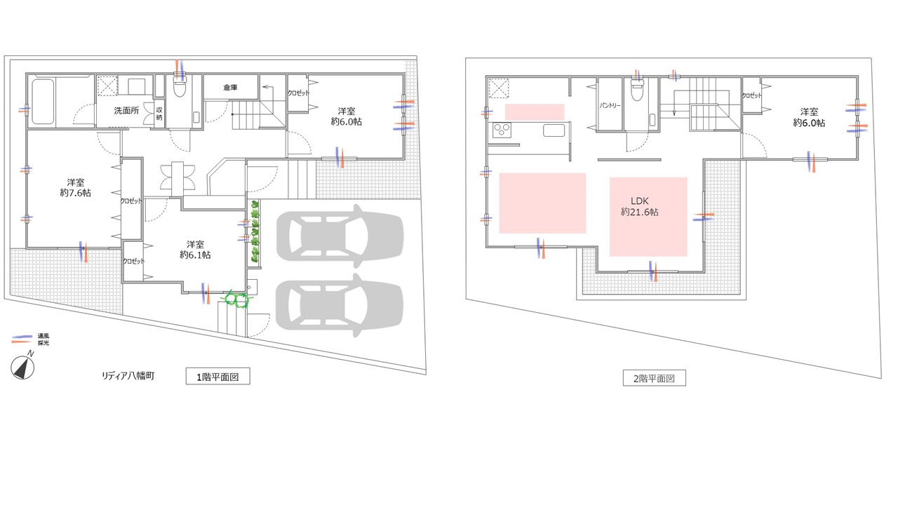 倉庫(1階)・パントリー(2階)有 |