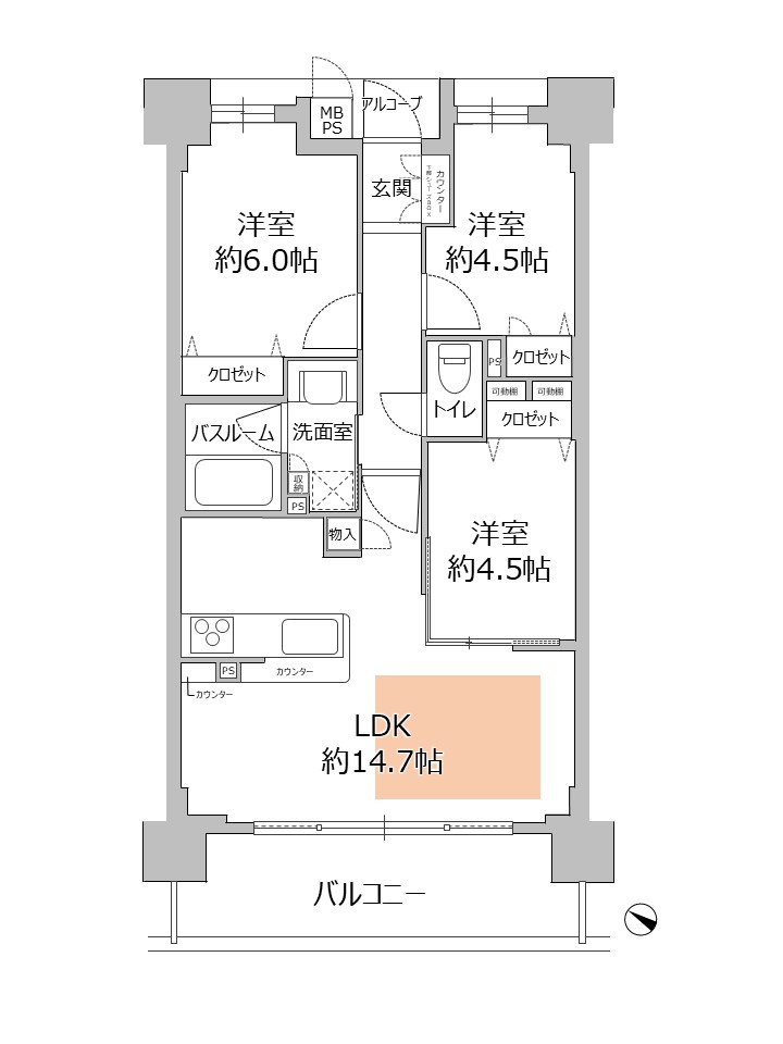 面積 | 63.71m² | 計測方式 | 壁芯 |